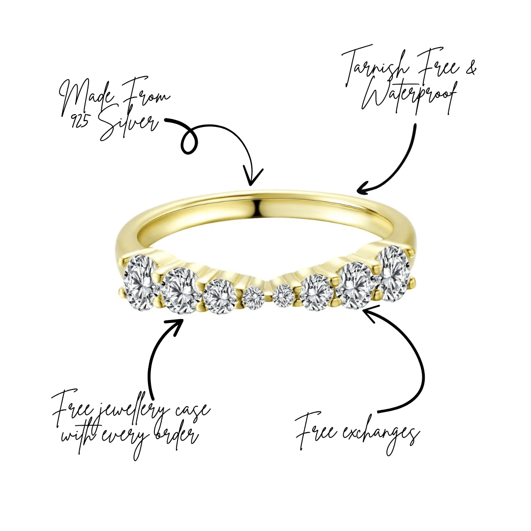 A future classic, the Little By Little Gold Stacking Ring is at once timeless yet untraditional. Made from 925 sterling silver and 14k gold plated, elegant in its craftsmanship, this design sits flush with a band style allowing layering to reflect your look.