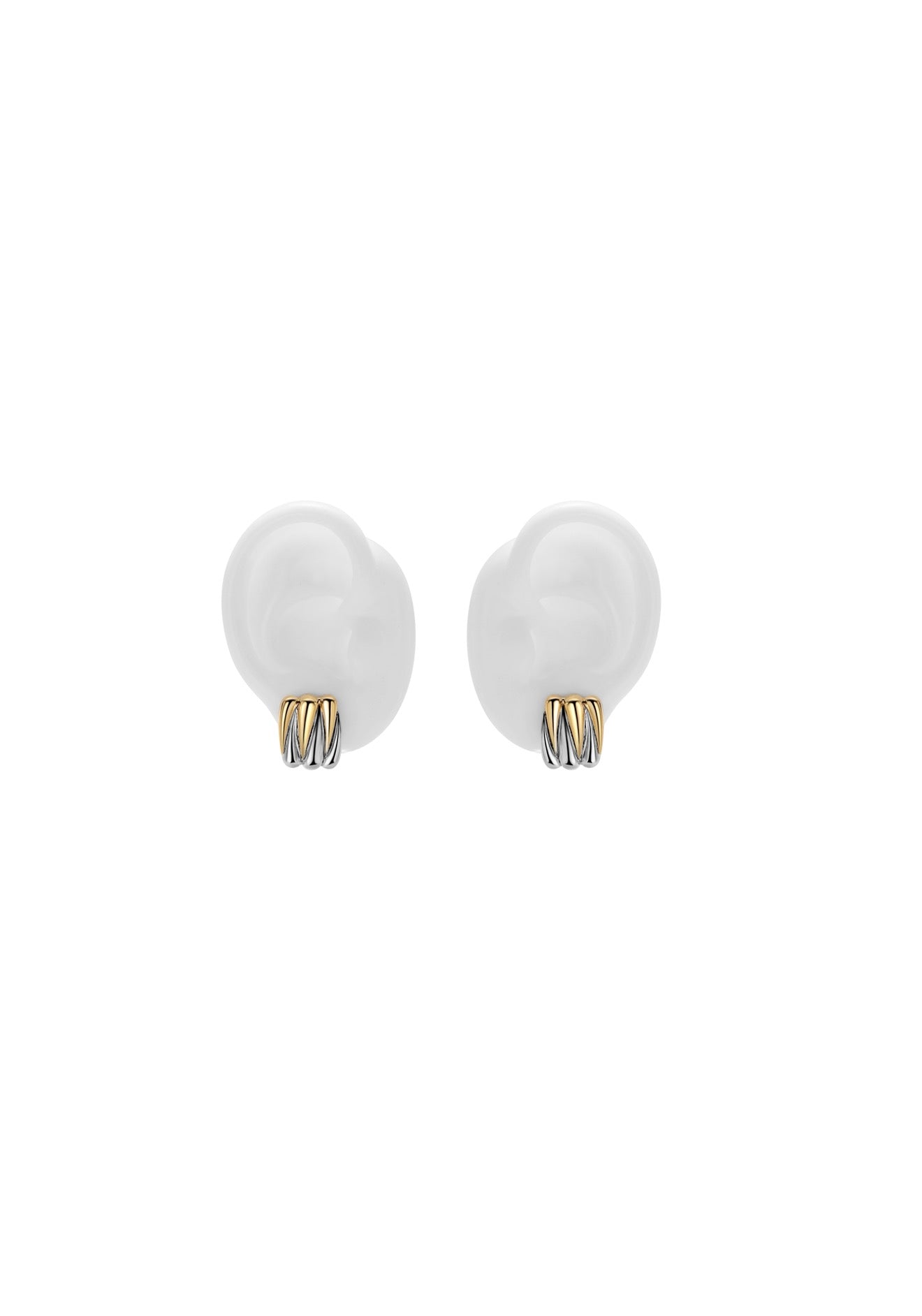 Elevate your everyday look with these Wild Thing two-tone zig-zag earrings. Designed with a fluid, ribbed silhouette, they blend warm gold tones with cool silver for a modern yet timeless aesthetic. The high-shine finish catches the light beautifully, making them an effortless statement piece for both day and night.