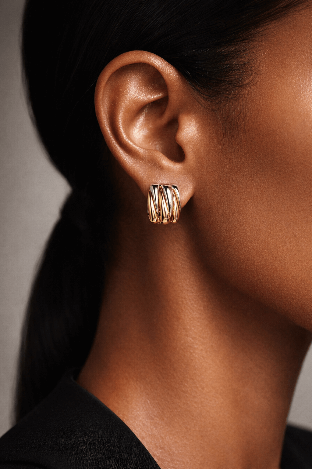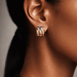 Elevate your everyday look with these Wild Thing two-tone zig-zag earrings. Designed with a fluid, ribbed silhouette, they blend warm gold tones with cool silver for a modern yet timeless aesthetic. The high-shine finish catches the light beautifully, making them an effortless statement piece for both day and night.